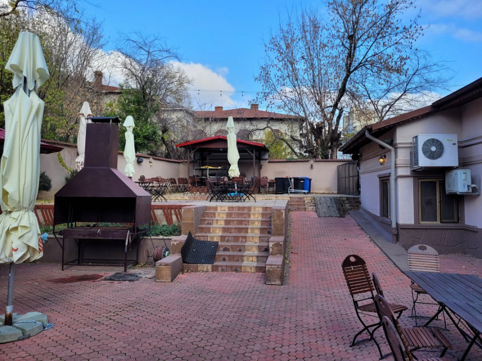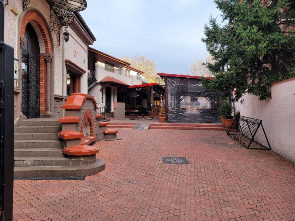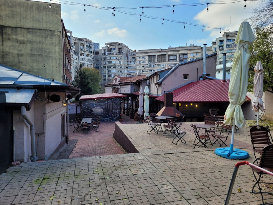 Curte libera avand suprafata aproximativ 800 mp este amenajata ca si terasa de vara si dispune inclusiv de o zona de bar amenajat la exterior